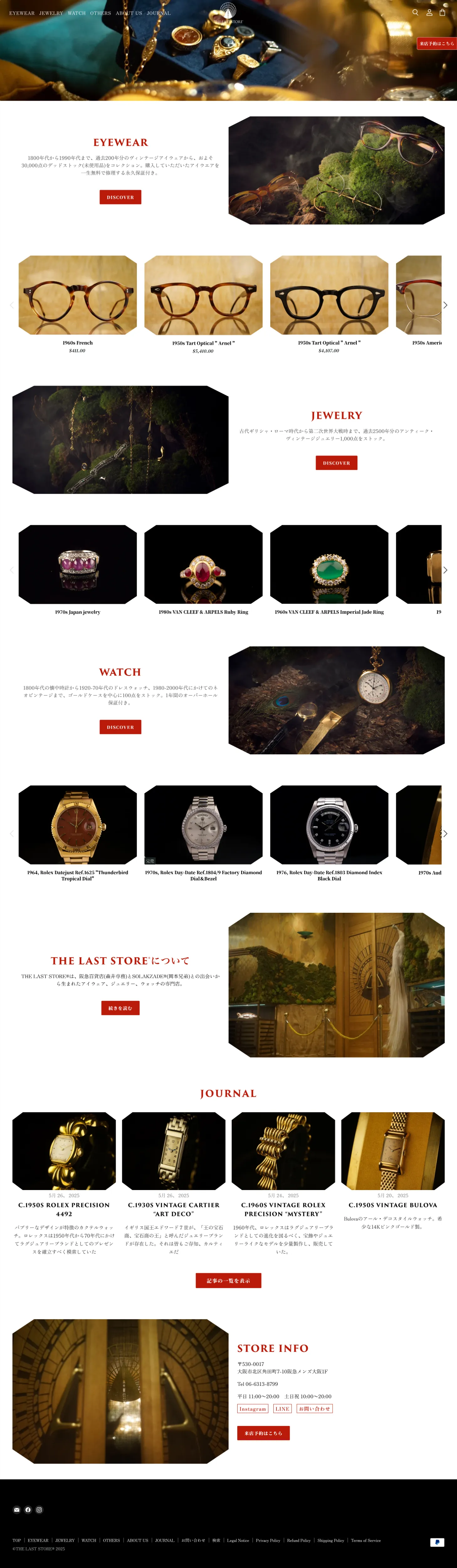 ビンテージアイウェアやジュエリーを取り扱うTHE LAST STOREでは、実店舗や商品の持つ独自の世界観をオンライン上でも自然に伝えられるECサイトの構築が求められていました。